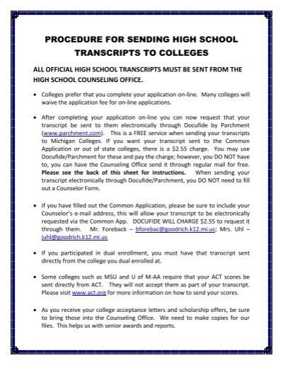 One hidden secret of sending transcripts is the importance of maintaining open communication with your high school's guidance office. They are there to guide you through the process and provide any necessary assistance. If you have any questions or concerns about sending your transcript, don't hesitate to reach out to them for clarification. They can help ensure that your transcript is sent accurately and on time, giving you peace of mind during the college application process.